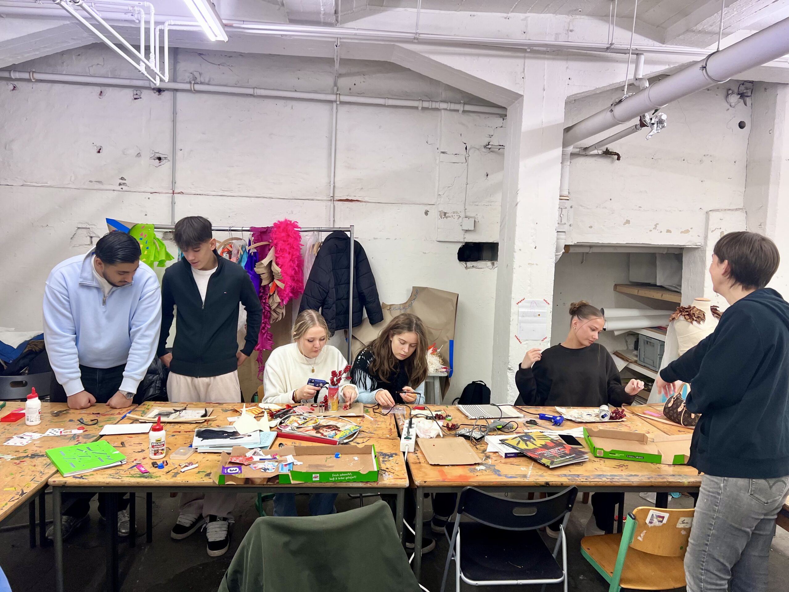Im Gruppenarbeitsraum des Oberstufenzentrums hat die 12a unter der Leitung der profilgebenden Lehrkräfte Herrn Prinz und Herrn Berger wilde Farbexplosionen